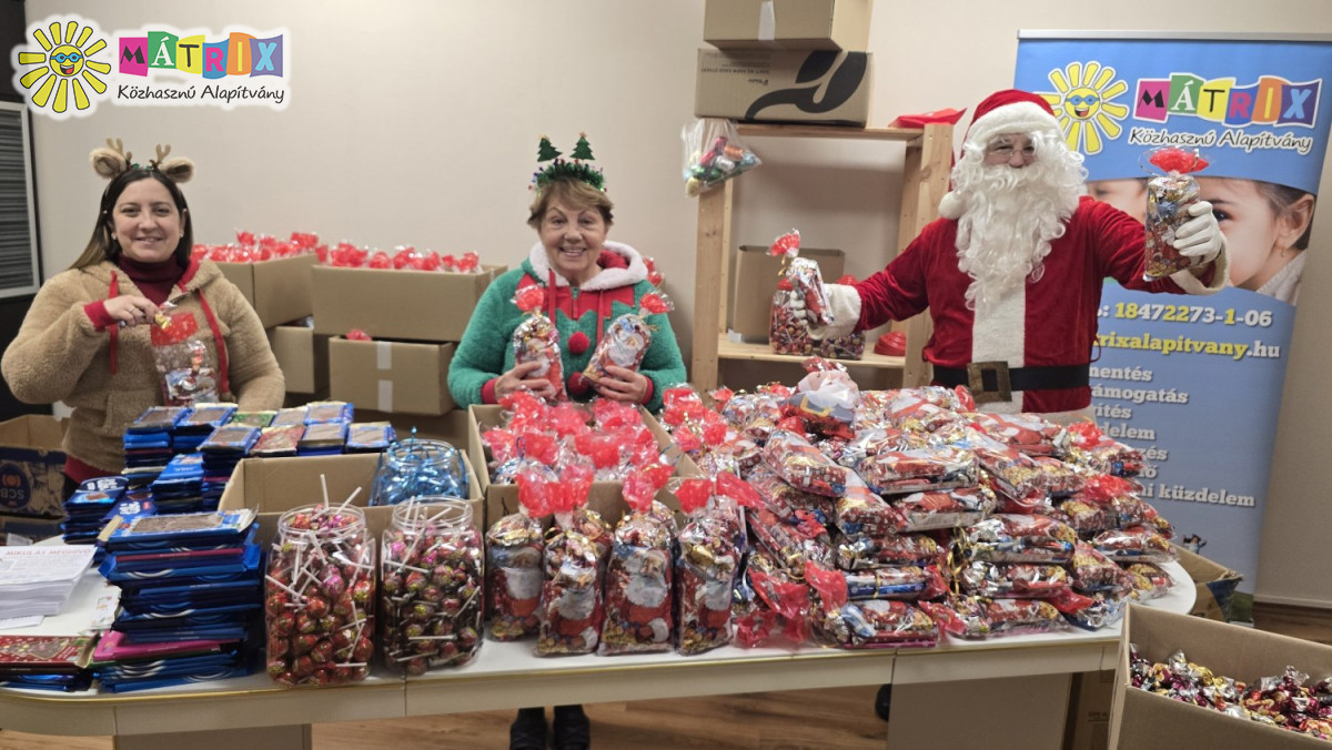 Sok kisgyermek számára nem jut az adventi ünnepek idején segítség nélkül ajándék. A Mátrix Közhasznú Alapítvány segítői ezer rászoruló gyermeket ajándékoznak meg Mikulás csomaggal. A tonnányi finomsággal érkező nagyszakállút és krampuszait a rendezvény előtt napokon át lázas készülődéssel tucatnyi önkéntes, és bohócdoktor segítette. A csomagokból jut az egész országba, segítő közösségeken keresztül a mélyszegénységben élőket is eléri.