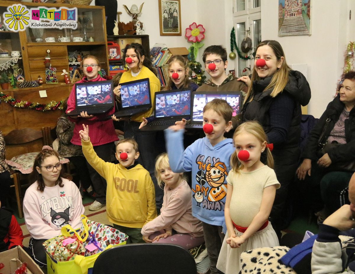 A Mátrix Közhasznú Alapítvány bohócdoktor csapata idén karácsonykor mintegy 5000 családot és gyermeket támogat játékokkal, könyvekkel, ruhákkal és mindennapi használati eszközökkel. Az adományok segítő szervezeteken keresztül több mint 40 hátrányos helyzetű településre jutnak el országszerte, hogy az ünnep varázsa ott is jelen lehessen, ahol erre másként nem lenne lehetőség.
